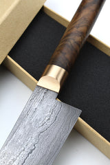Blade: Hand forged damascus, 63 HRC, 215 mm