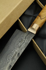 Blade: Hand forged damascus, 63 HRC, 215 mm