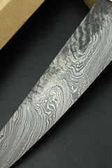 Blade: Hand forged damascus, 63 HRC, 215 mm