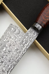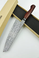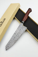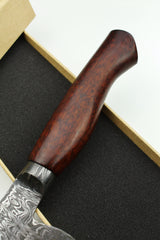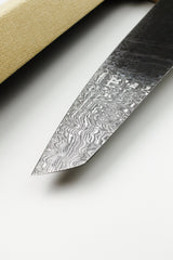 - Blade: Hand-forged damascus, 63 HRC, 215 mm