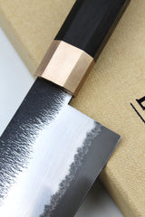 The transversely satinized tin bronze forms the core between the San Mai 3LN blade and the East Style Octagonal handle designed as a real ferrule.