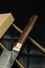 Blade: Hand forged damascus, 63 HRC, 215 mm