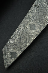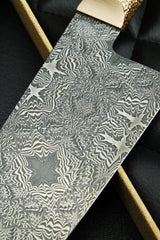 This pattern was forged with light and dark stars in an exploded mosaic damask consisting of 3 different mosaic bars, which in turn are assembled from 4 different steels with the greatest precision.