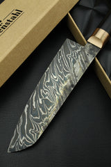 Blade: Hand forged damascus, 63 HRC, 180 mm